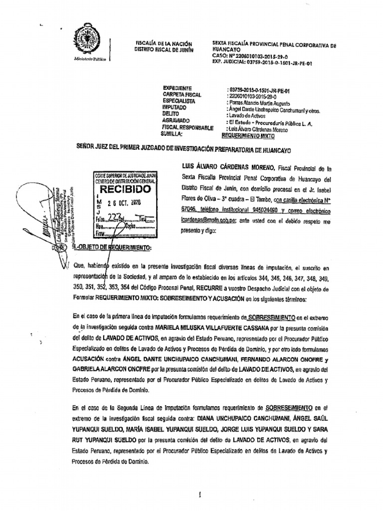 Fiscalia Halla Desbalance Patrimonial En Unchupaico Y Lo Acusa Como Autor Mediato De Lavados De Activos Pdf