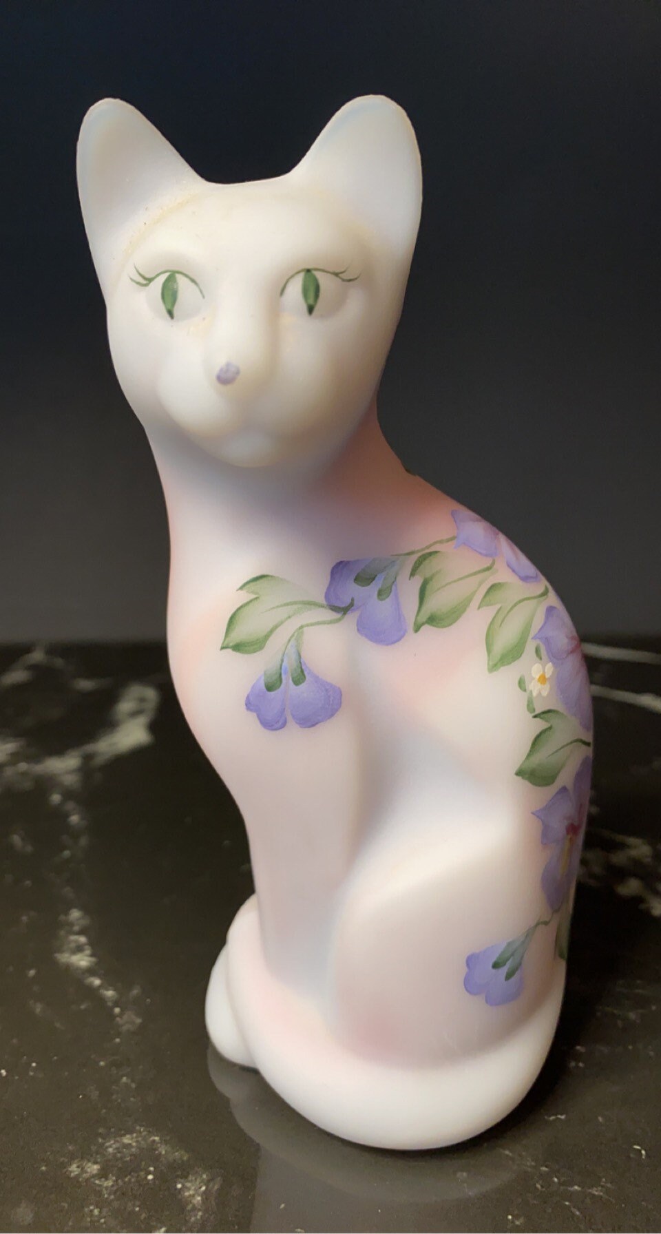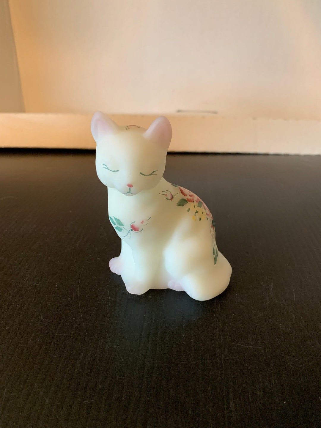 Vintage Fenton White Hand Painted Cat Figurine Satin Glass Etsy De